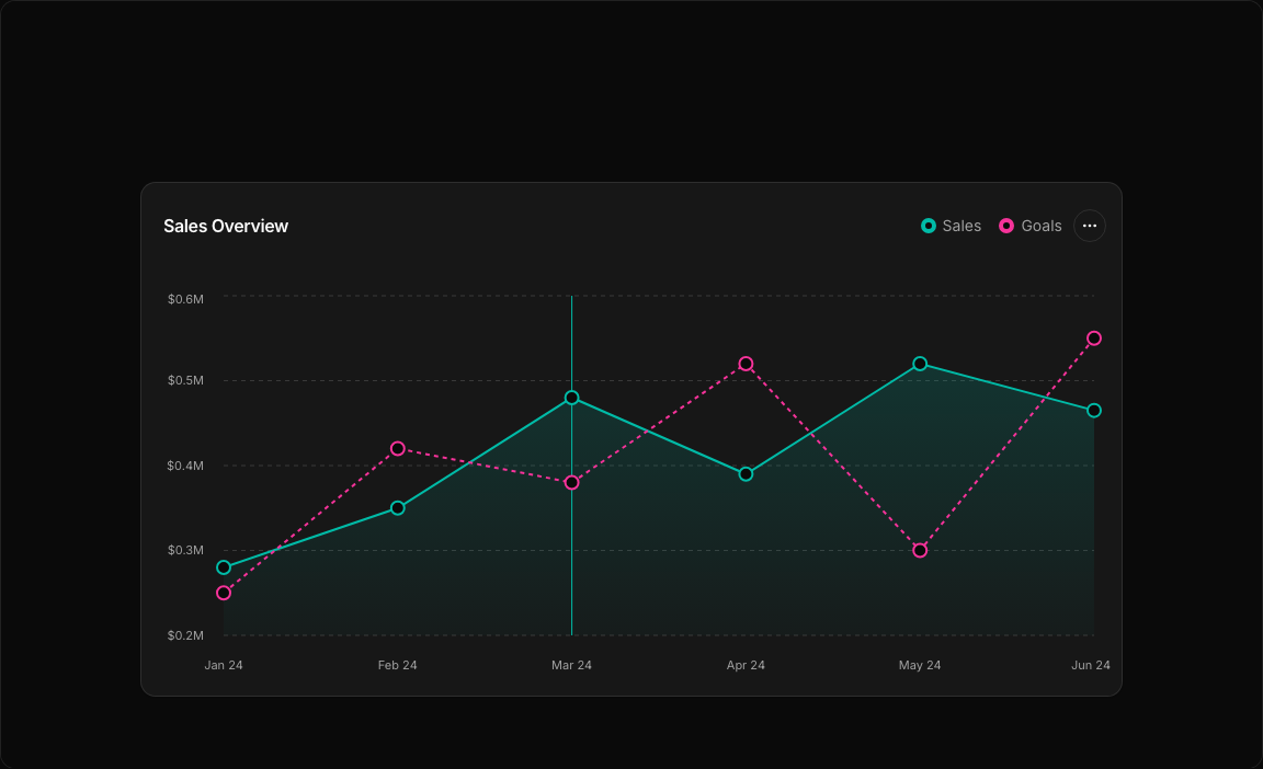 - Gradient Area Fill – Semi-transparent teal gradient under the sales line.