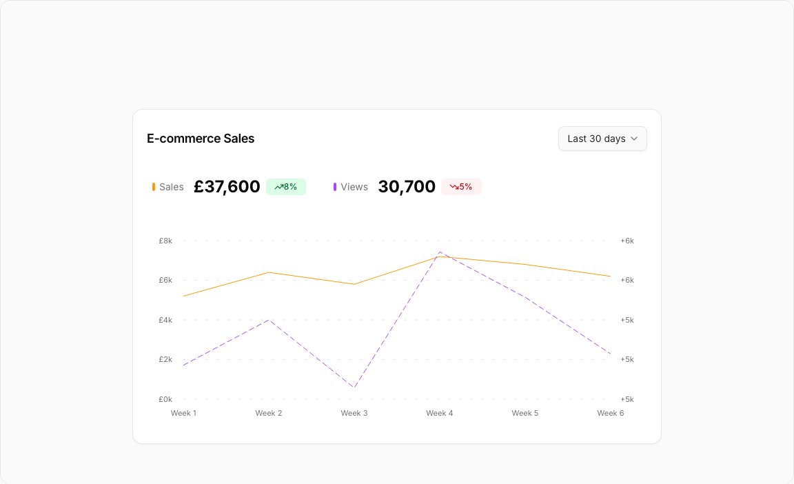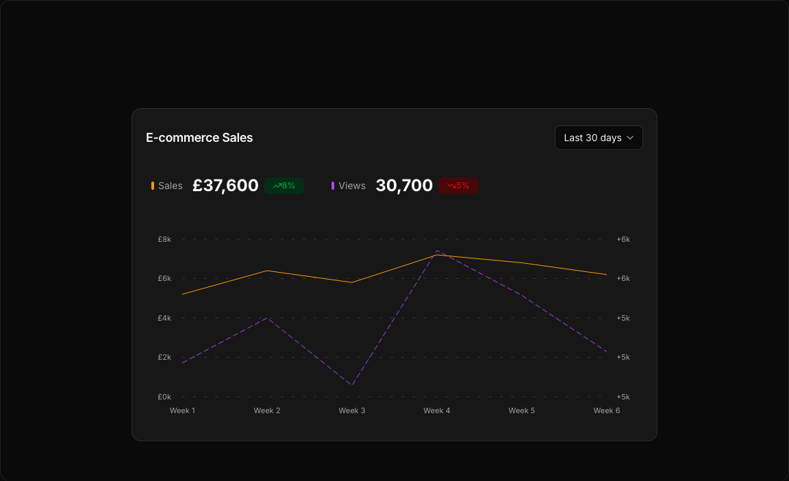 { period: "Week 4", sales: 7200, views: 5800 },