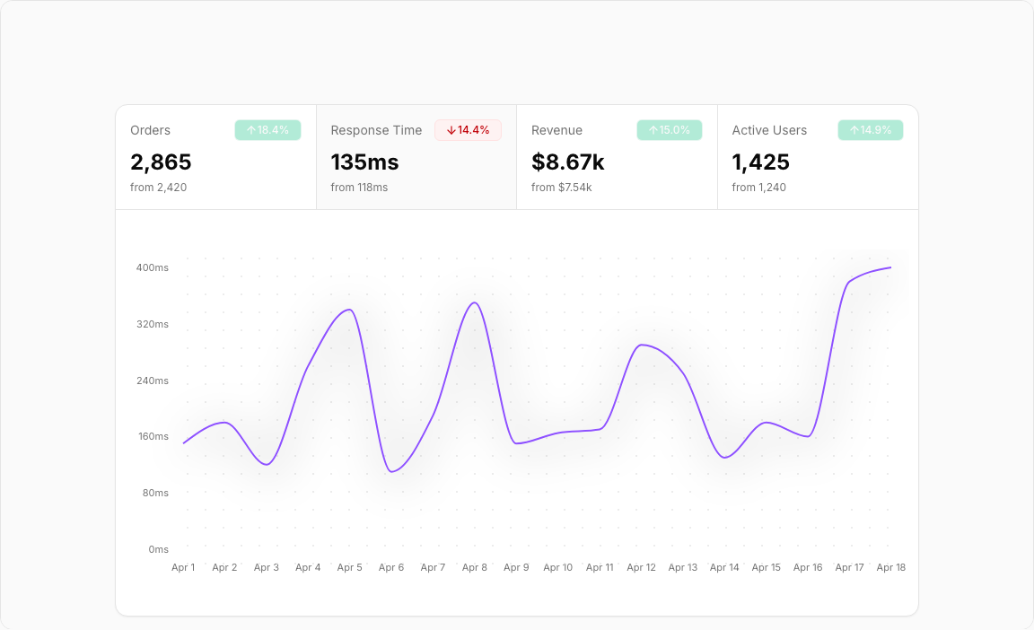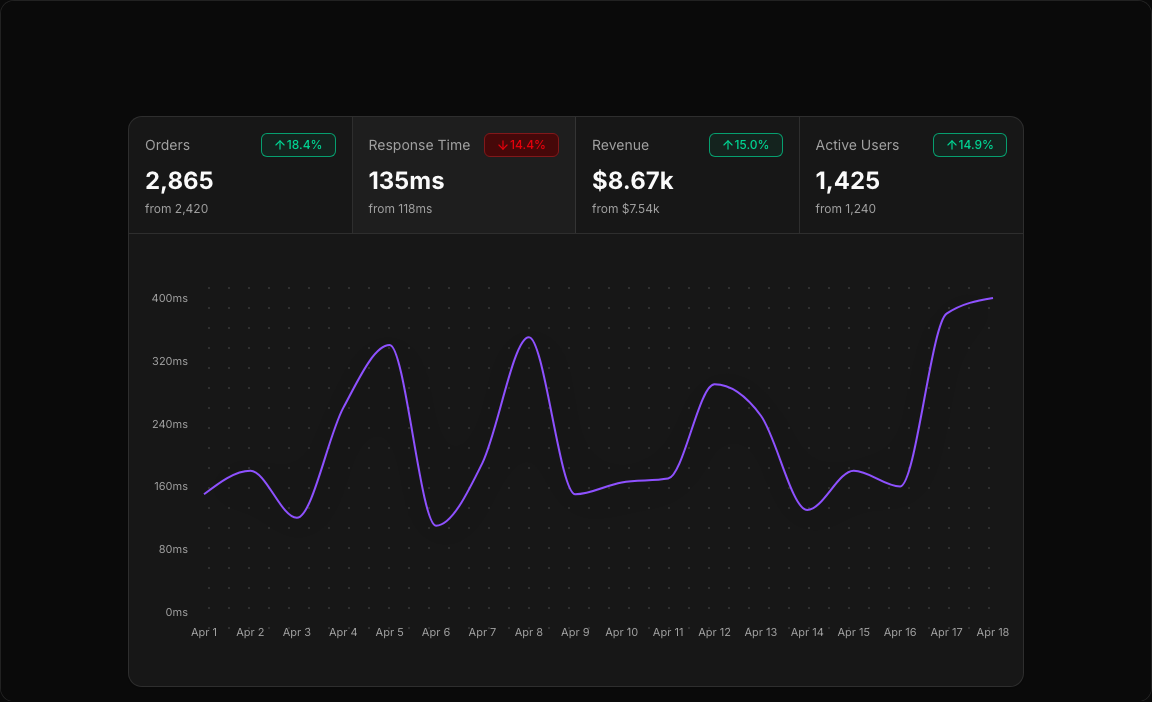 - Four Switchable Metrics – Orders, Response Time, Revenue, Active Users.